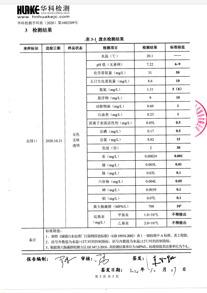华科检测 2020年10月污水检测报告
